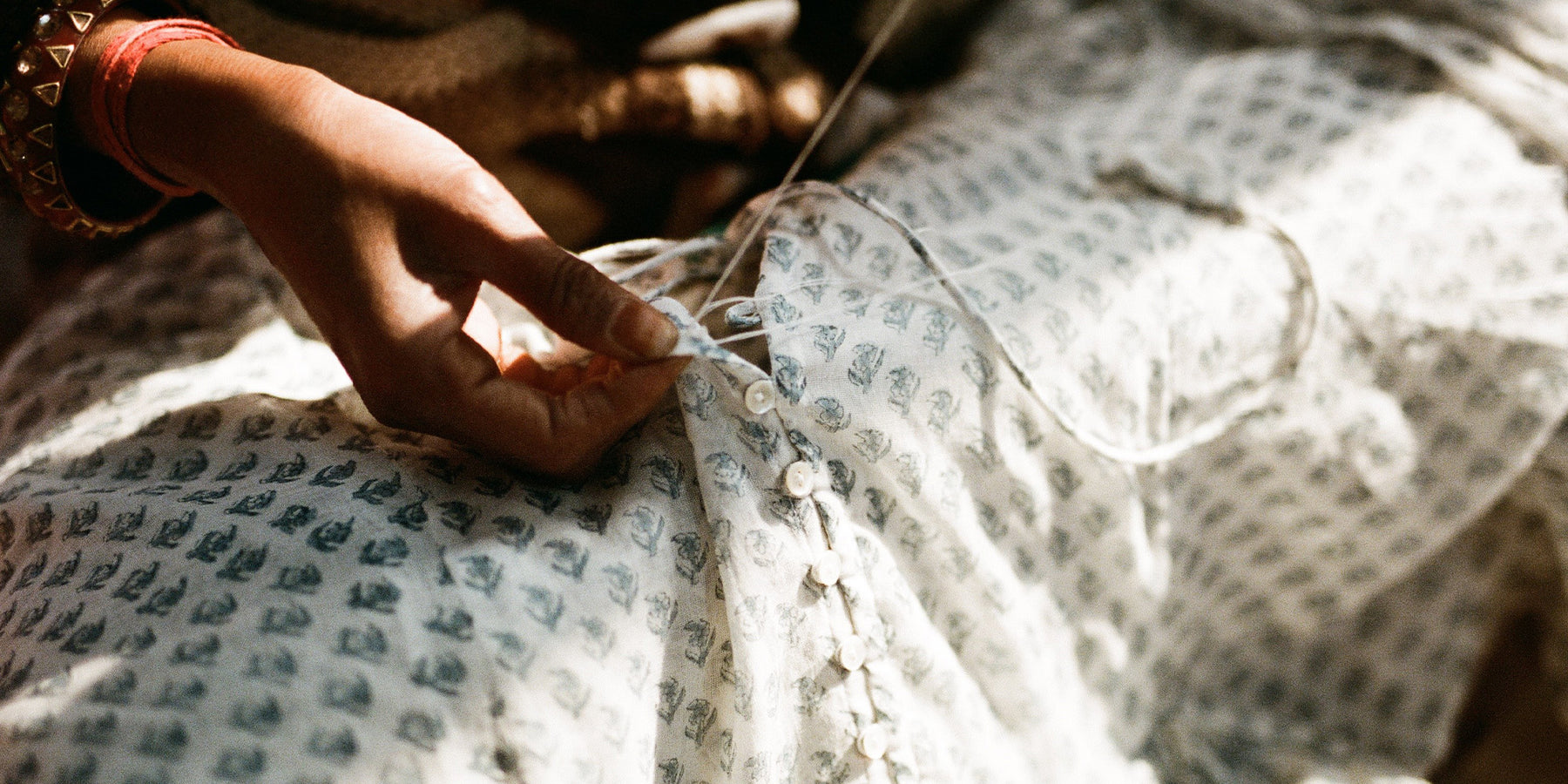 Celebrating our slow fashion ethos, Nora is an ode to the art of handmade. Beginning with four wood blocks intricately hand-carved to create two traditional jaal and buti floral designs, skilled artisans then use the blocks to slowly and carefully hand print delicate blue hues upon the softest cotton voile. Tiers of printed fabric have then been gracefully layered and finished with mother-of-pearl buttons from bodice to base, forming this free flowing feminine style lovingly hand-crafted by a small group of women in Jaipur, India.