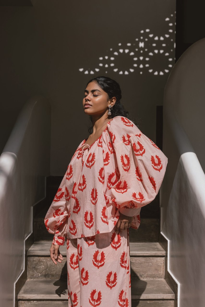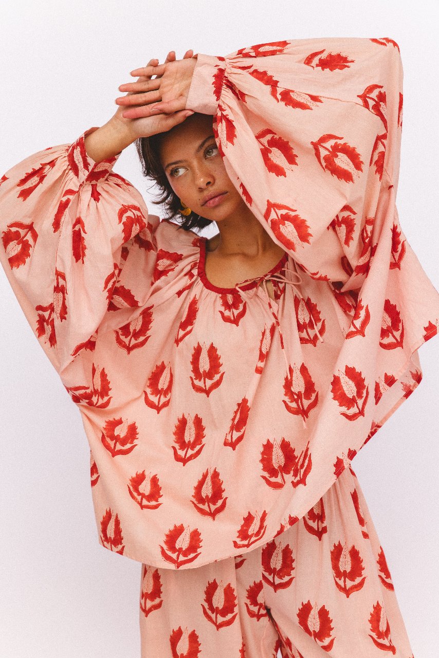 This blouse is beautiful. The colour is exactly as shown and the fabric is so light. I am a good size 16 and ordered a Medium in Cherry Blossom but could have possibly sized down to a small. The sleeves are a fraction too long and the neck is a little wide. I need to gather it as much as possible to feel comfortable. Nevertheless it is a lovely top.
